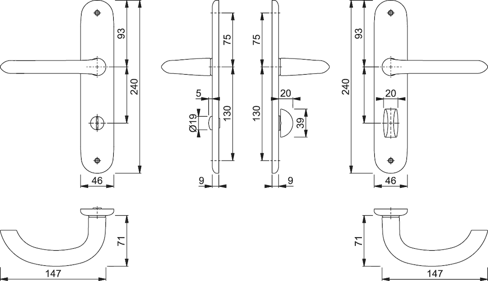 HOPPE Drückergarnitur Marseille 1138/273P; Produkttyp: Drückergarnitur; Produkttyp (Hersteller): Drückergarnitur; Ausführung: Langschild; Befestigungsart: sichtbar verschraubt; Befestigungstechnik: ohne Stütznocken; Form: oval; Vierkant: 8 mm; Material: Aluminium; Form Türgriff (innen): gebogen; Form Türgriff (außen): gebogen; Länge Türgriff (innen): 147 mm; Länge Türgriff (außen): 147 mm; Höhe Türgriff (innen): 71 mm; Höhe Türgriff (außen): 71 mm; Schildbreite außen: 46 mm; Schildbreite innen: 46 mm; Schildlänge außen: 240 mm; Schildlänge innen: 240 mm; Schildstärke außen: 9 mm; Schildstärke innen: 9 mm; Lagerung: wartungsfreies Gleitlager,mit Rückholfeder; Einsatzbereich: Objekttür; Türart: Vollblatt; Türwerkstoff: Holz,Stahl; Norm: DIN EN 1906; Lochung: WC Schlitzkopf; Entfernung: 78 mm; Riegel-Vierkant: 8 mm; DIN-Richtung: DIN Links-Rechts; Farbe: silber; Farbton: naturfarben; Oberfläche: eloxiert; Ausführung Vierkant: Vierkantstift; Türstärke min.: 37 mm; Türstärke max.: 42 mm; EN 1906 - Gebrauchskategorie: Klasse 3; EN 1906 - Korrosionsbeständigkeit: Klasse 4; Klassifizierungsschlüssel EN 1906: 37-0140A
