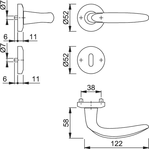 | Beschlagsausführung: | Türdrücker-/Wechselgarnitur mit Rosette |