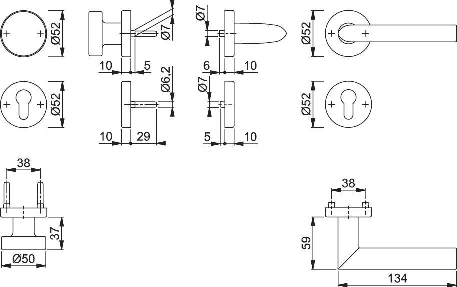 | Beschlagsausführung: | Türdrücker-/Wechselgarnitur mit Rosette |