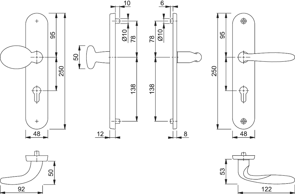 HOPPE® Schutz-Wechselgarnitur mit Langschild Pisa M76G/361A/360/151, 8/72 mm, Messing