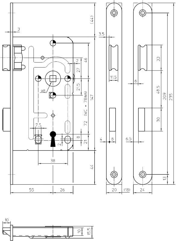 KFV Einsteckschloss WES 104-1/2, Klasse 1, 8/78 mm, rund, Stahl