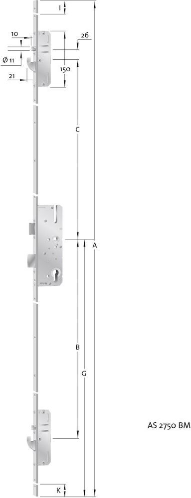 KFV Mehrfachverriegelung MFS AS2750SLQ, U-Stulp, B041, Stahl, RR, Klasse 3 3486673