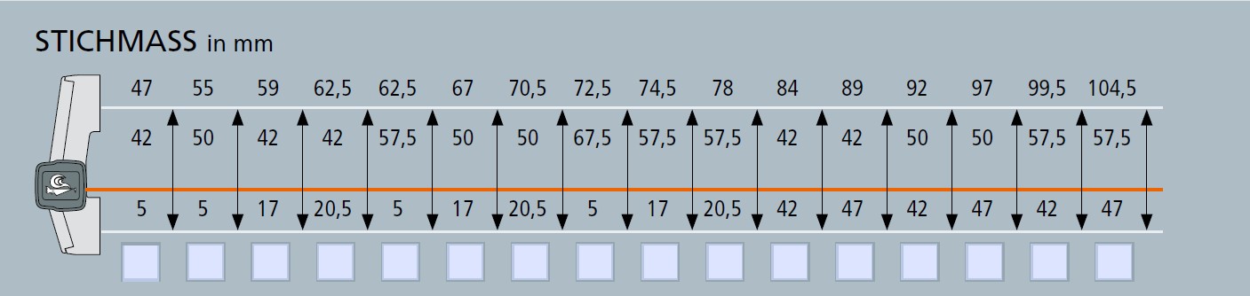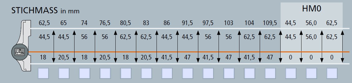 Das Stichmaß ist der Abstand der Befestigungspunkte des Rahmenbandteils.